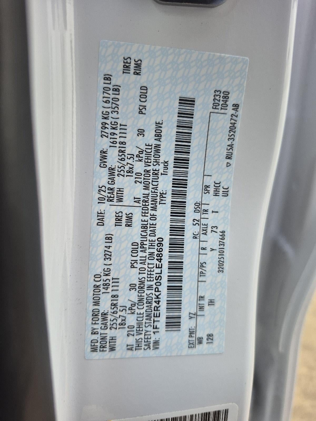 - Tires: 255/65R18 All-Terrain BSW